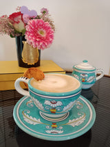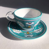 C'est dans la ville de Portofino que nous avons puisé l'inspiration de ce service à cappucino. Une myriade de maisons aux couleurs vives bordant l'eau turquoise, endroit parfait pour prendre un café sur le port.