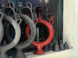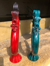 Hauteur : 46 cm en vert et 50 cm en rouge.